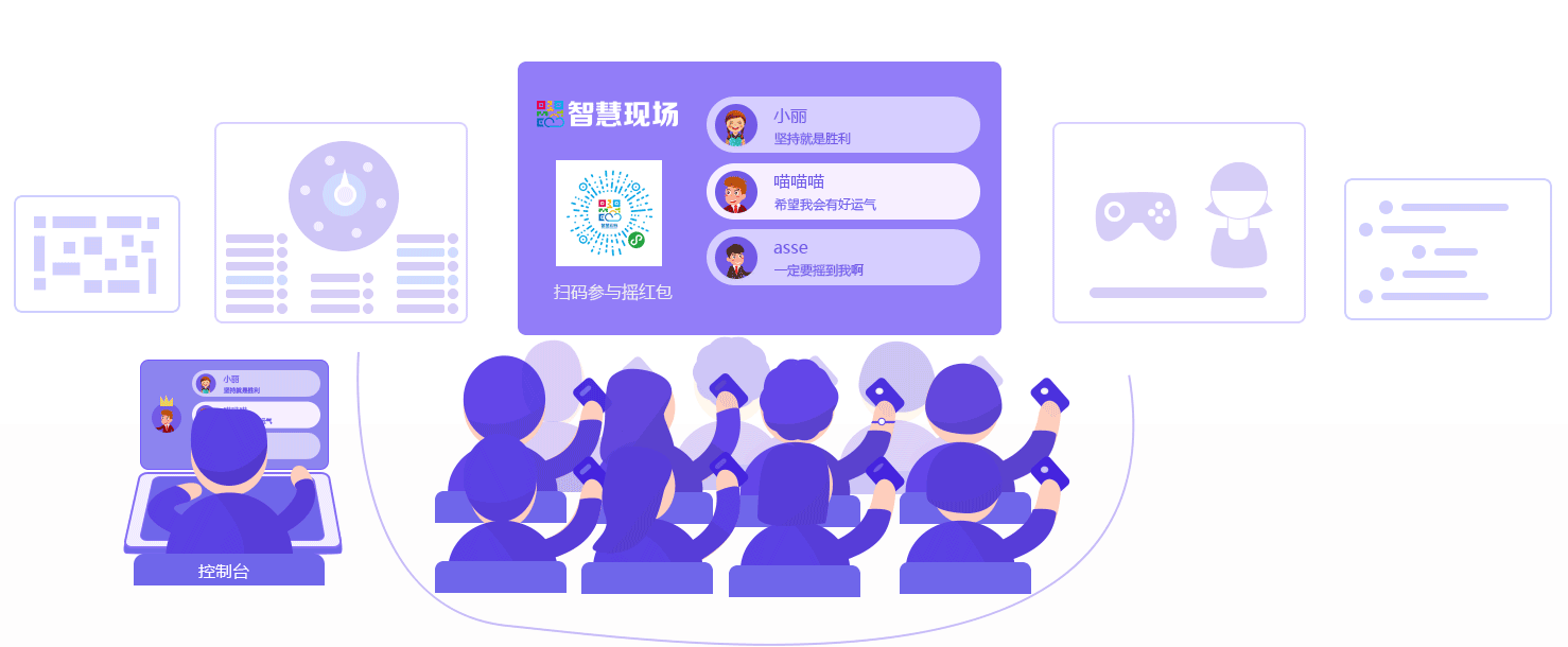 集成众多互动游戏,让主办方把控整个活动会议的流程,推动现场的氛围。