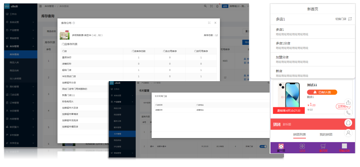 总部超管管理员可查看库存分布情况,各分店库存独立,卡片可指定可用门店,资源共享,大大提升品牌的形象