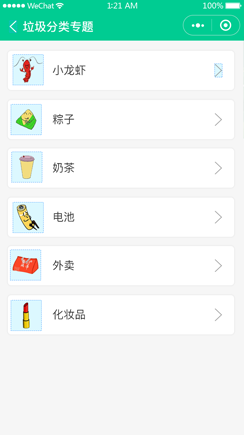 智慧垃圾分类小程序为帮助用户更快掌握垃圾分类知识,还提供关于垃圾分类知识测试